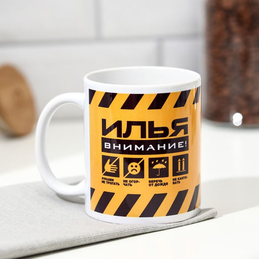 Кружка сублимация "Илья" черно-желтая, 320 мл, с нанесением