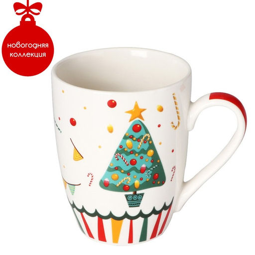 Кружка фарфоровая в подарочной упаковке Доляна Новый год. Ёлочка, 350 мл, цвет белый