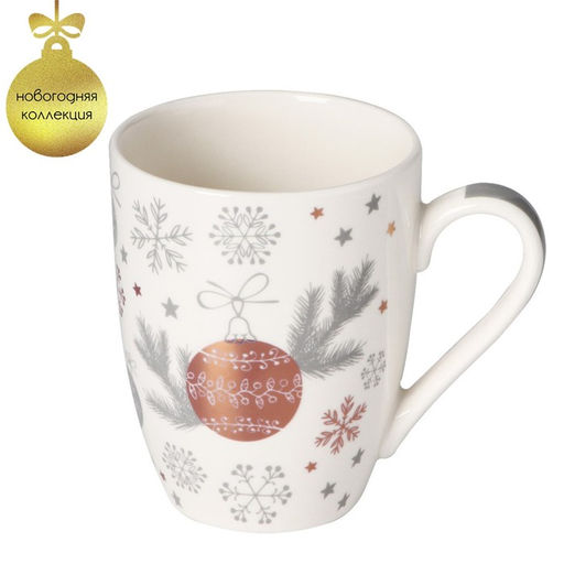 Кружка фарфоровая Доляна Новогодний шар, 350 мл, цвет белый