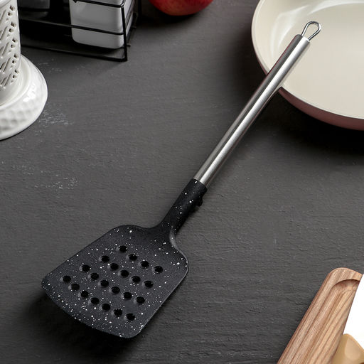 Лопатка кулинарная Доляна Фернан, 33 см, с прорезями, цвет чёрный