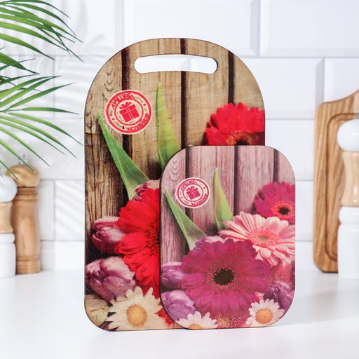 Набор деревянная разделочная доска и подставка под горячее с декором "№1" 29,25х18,75х1,1 см