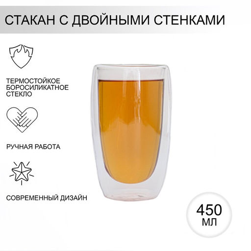 Стакан стеклянный с двойными стенками Хайбол, 450 мл