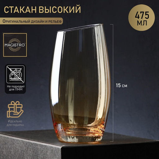 Стакан стеклянный высокий Magistro Иллюзия, 475 мл, 815 см, цвет золотой