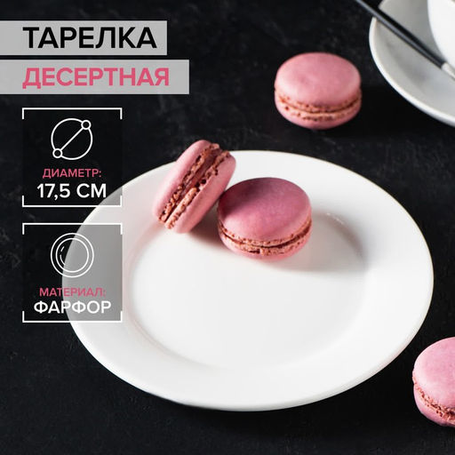 Тарелка фарфоровая десертная с утолщённым краем White Label, d=17,5 см, цвет белый
