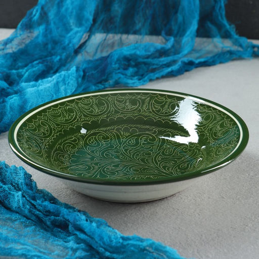 Тарелка Риштанская Керамика "Узоры", зелёная, глубокая, 20 см