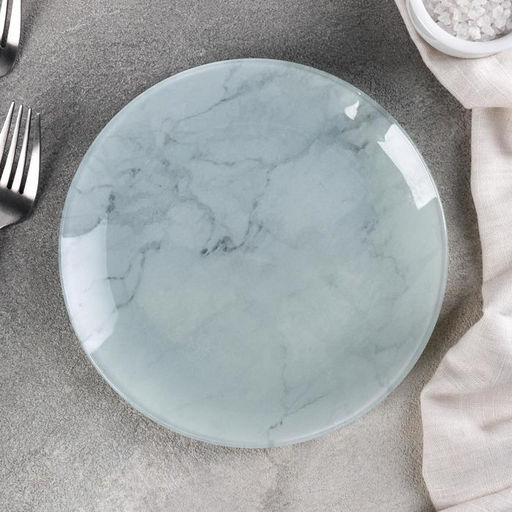 Тарелка стеклянная пирожковая Доляна Марбл белый, d=17,5 см