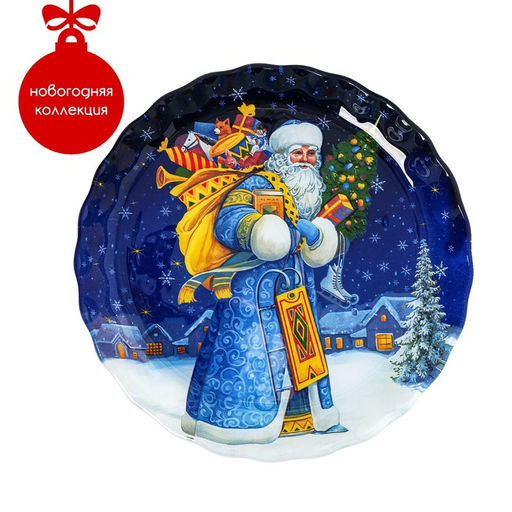 Блюдо стеклянное сервировочное Доляна Дед Мороз, d=19 см