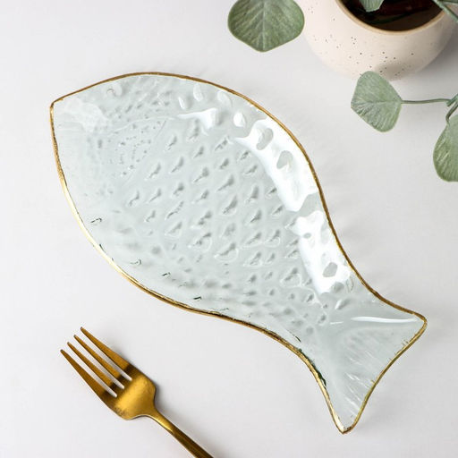 Блюдо стеклянное сервировочное Рыбка, 1324 см, с золотой каймой