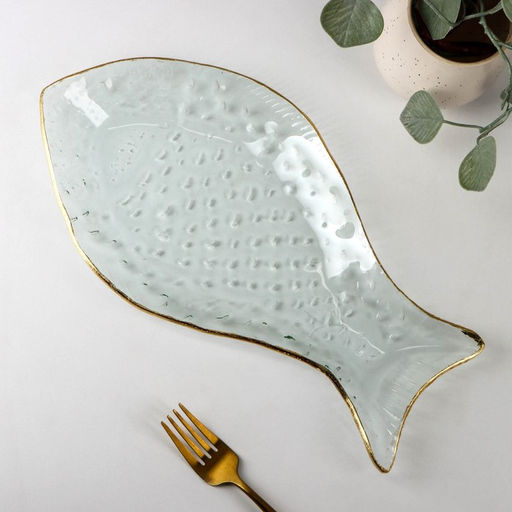 Блюдо стеклянное сервировочное Рыбка, 1833 см, с золотой каймой