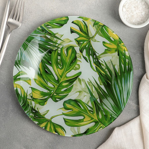 Тарелка стеклянная обеденная Доляна Монстера, d=23 см