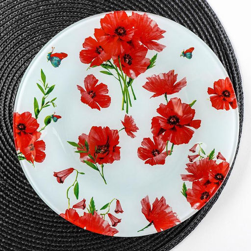 Тарелка стеклянная обеденная Доляна Красные маки, d=23 см