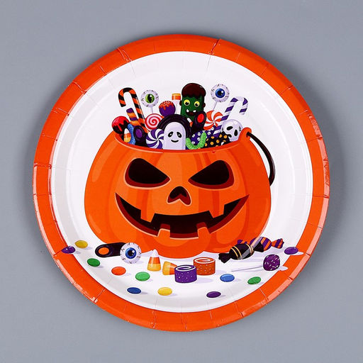 Тарелка бумажная Тыква, в наборе 6 шт.