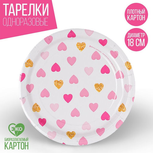 Цена за 10 шт. Тарелка бумажная Сердца