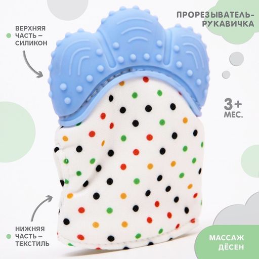 Прорезыватель рукавичка Малыш, на липучке, цвет синий, Крошка Я
