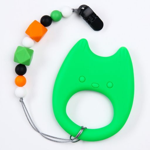 Прорезыватель силиконовый на держателе Котик, Крошка Я
