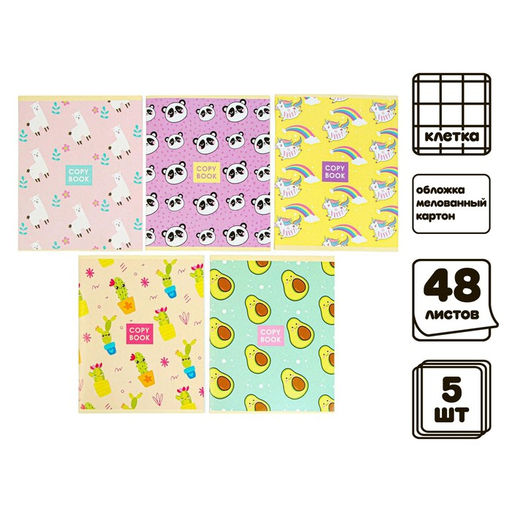 Комплект тетрадей из 5 шт, 48 листов, клетка, Паттерн, обложка мелованный картон, блок №2, белизна 75%