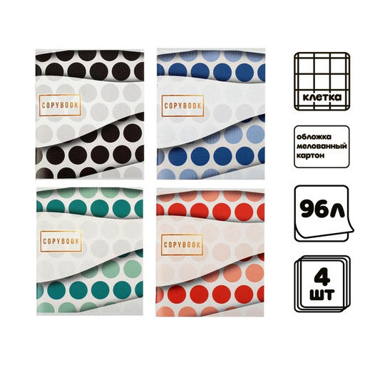 Комплект тетрадей из 4 шт, 96 листов, клетка, Геометрический вальс, обложка мелованный картон, блок №2, белизна 75%