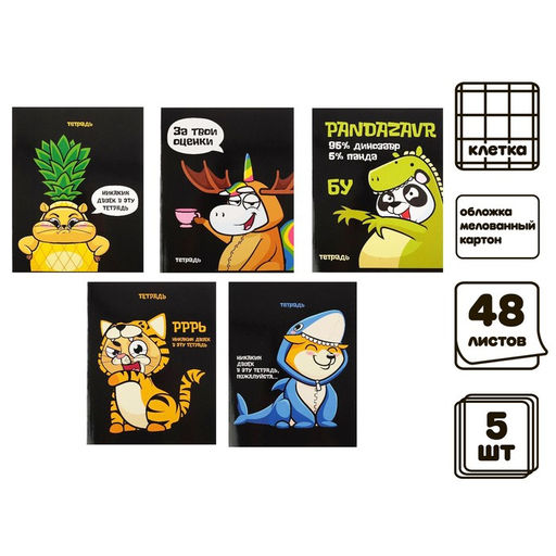 Комплект тетрадей из 5 шт, 48 листов, клетка, "Кигуруми", обложка мелованный картон, блок офсет