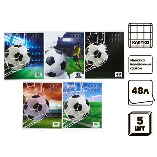 Комплект тетрадей из 5 шт, 48 листов, клетка "Победа!", обложка мелованный картон, Уф-лак, блок офсет
