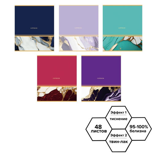 Тетрадь 48 листов в клетку Calligrata "Мрамор с полосой", обложка мелованный картон, ТВИН-лак, тиснение фольгой, блок офсет МИКС
