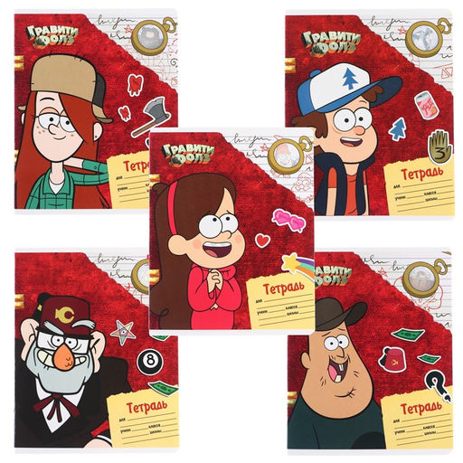 Цена за 10 шт. Тетрадь 24 листа, 5 видов МИКС, линейка, Частичный УФ, Гравити Фолз