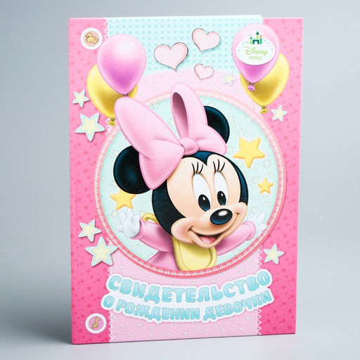 Свидетельство о рождении "Минни малышка", Минни Маус, размер файла 21х30 см Disney (новый формат свидетельства)
