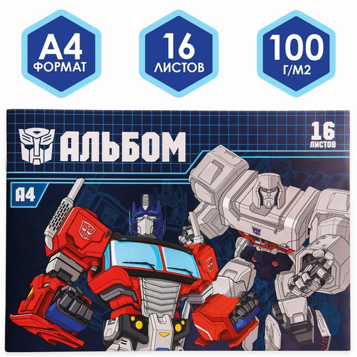 Альбом для рисования А4, 16 листов 100 г/м, на скрепке, Трансформеры