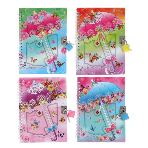 Записная книжка подарочная на замочке, А6+, 50 листов, линия, "Зонтик", МИКС