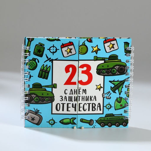 Двойной блокнот на гребне, мягкая обложка, размер 15х12см, 48 л С днем защитника отечества