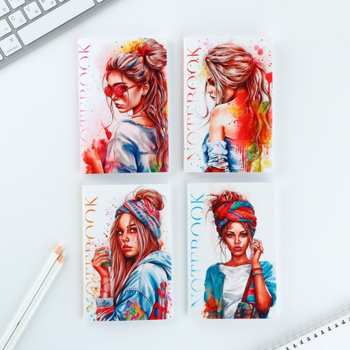 Цена за 4 шт. МИКС блокнотов А6, 32 листа Девушки