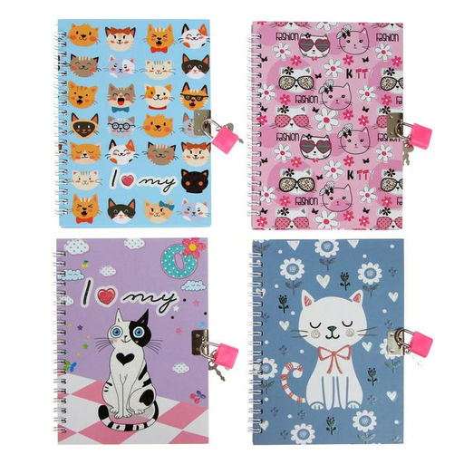 Записная книжка на замочке "Котики" А5-, 45 листов, в линейку, на гребне, МИКС