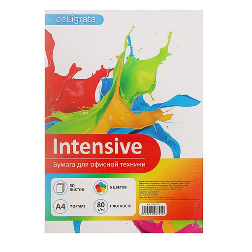 Бумага цветная А4, 50 листов Calligrata Интенсив, 5 цветов, 80 г/м