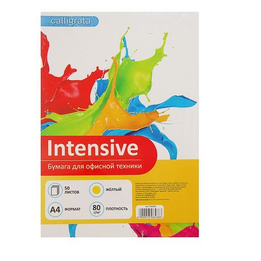 Бумага цветная А4, 50 листов Calligrata Интенсив, жёлтая, 80 г/м