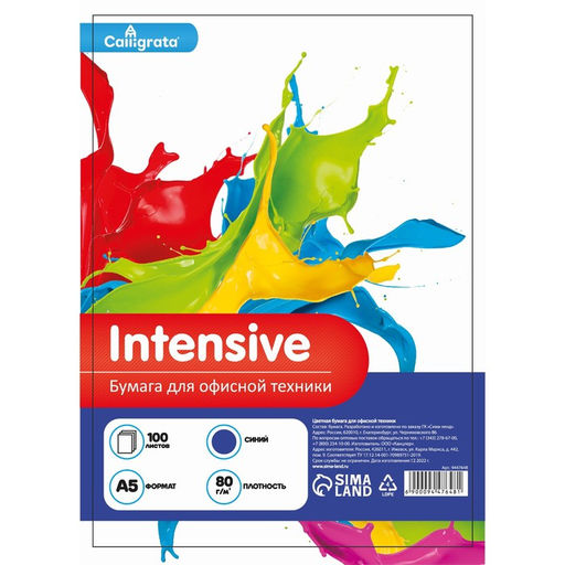 Бумага цветная А5 100л Calligrata Интенсив Синий 80г/м2