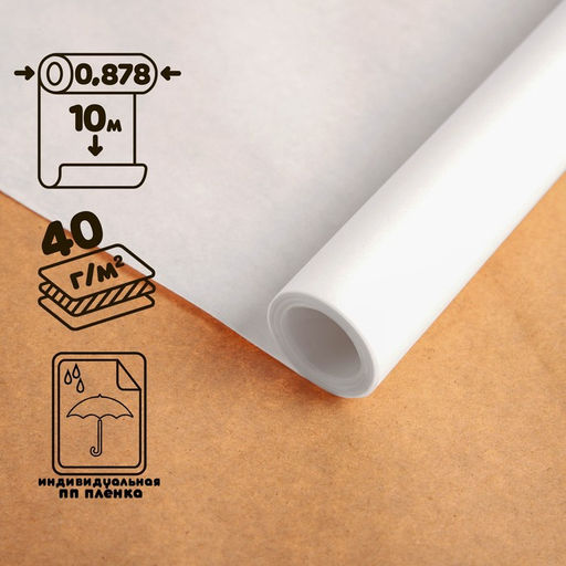 Калька чертёжная под тушь, ширина 878 мм, в рулоне 10 метров, 40 г/м, самоклеящаяся этикетка, (ПП пленка)