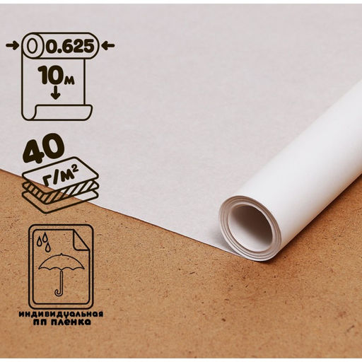 Калька чертёжная под карандаш, ширина 625 мм, в рулоне 10 метров, 40 г/м, в ПП плёнке
