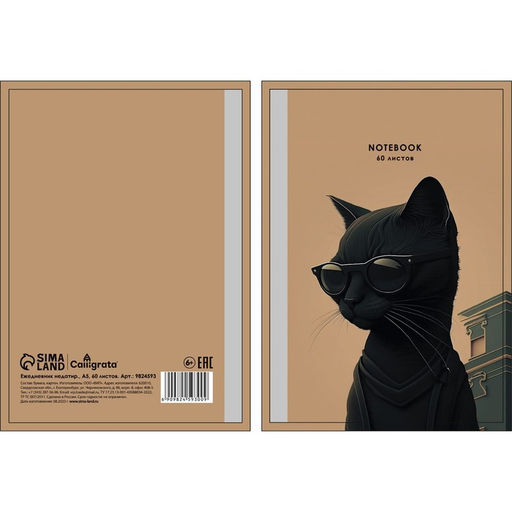 Ежедневник недатированный на гребне А5 60 листов, мягкая обложка "Черный кот в очках"