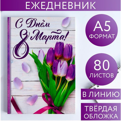 Ежедневник в твердой обложке А5, 80 л С днем 8 Марта!