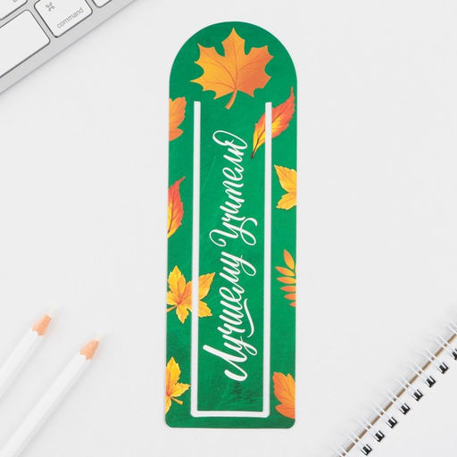 Цена за 10 шт. Закладка для книг Лучшему учителю с защипом ,картон, 6 см х 19 см.