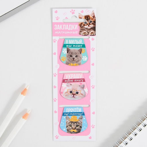 Магнитные закладки на подложке для книг Котики, 3 шт.