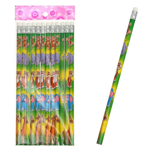 Цена за 12 шт. Карандаш чёрнографитный с ластиком "Зоопарк", твёрдость НВ