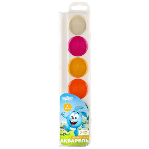 Акварель перламутровая "Смешарики", 6 цветов, без кисти