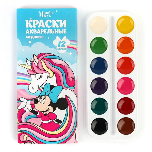 Акварель медовая Минни и единорог, 12 цветов, в картонной коробке, без кисти