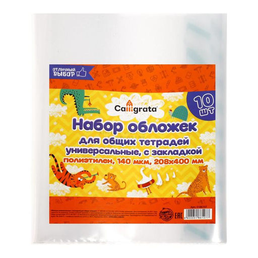 Набор обложек ПЭ 10 штук, 208 х 400 мм, 140 мкм, для тетрадей, универсальная, с закладкой, МИКС