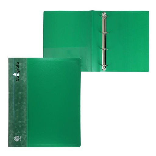 Папка на 4 кольцах А4 Calligrata, 40 мм, 700 мкм, пластик, внутренний карман, карман на корешок, зеленая