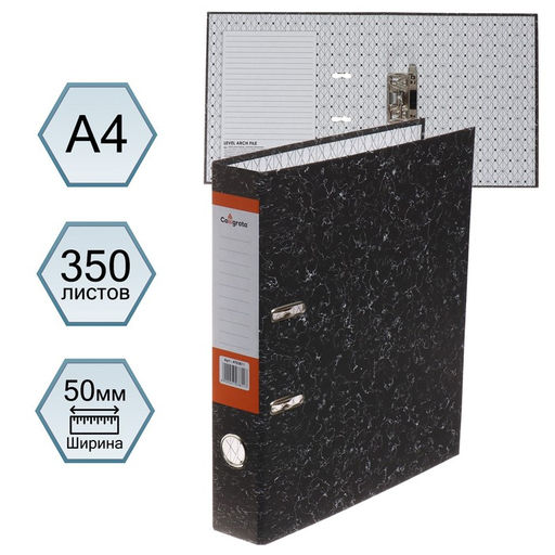 Папка-регистратор 50мм, А4, Calligrata "Standart", мрамор, черная