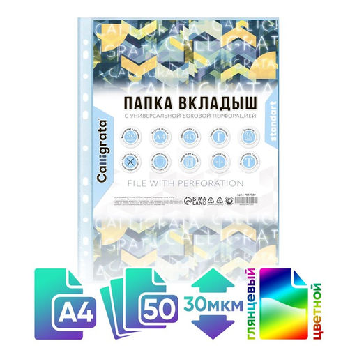 Файл-вкладыш А4, Calligrata, 30 мкм, прозрачный, вертикальный, 50 штук, тонированный, синий