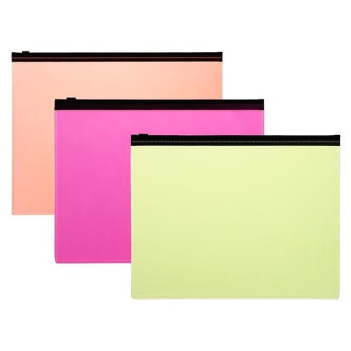Набор папок-конверт на ZIP-молнии А5, 150 мкм, Calligrata Neon, c черной молнией, неон, 4 штуки, микс