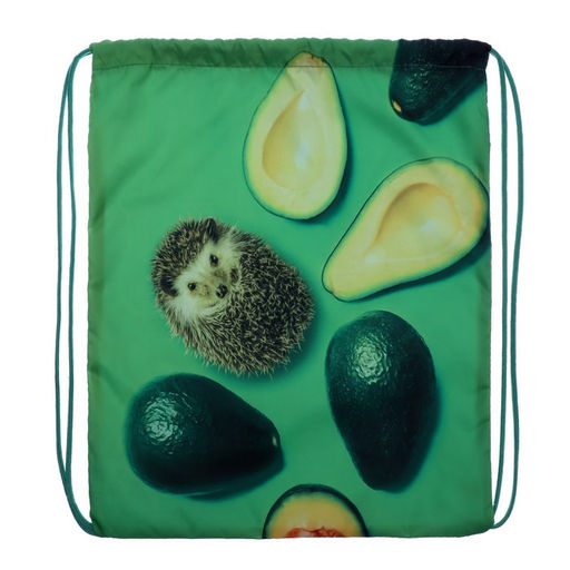 Мешок для обуви 420 х 340 мм, Calligrata МСО-5С, (мягкий полиэстер, плотность 210D), "Ежик с Авокадо зеленое"