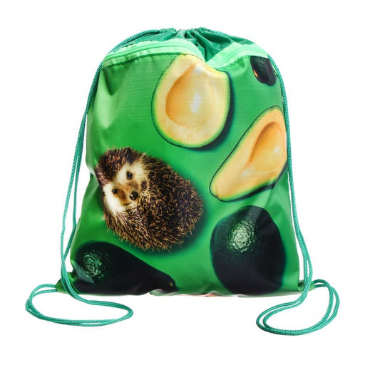 Мешок для обуви с карманом 420 х 340 мм, Calligrata МСО-7С, (мягкий полиэстер, плотность 210D), "Ежик с Авокадо зеленое"